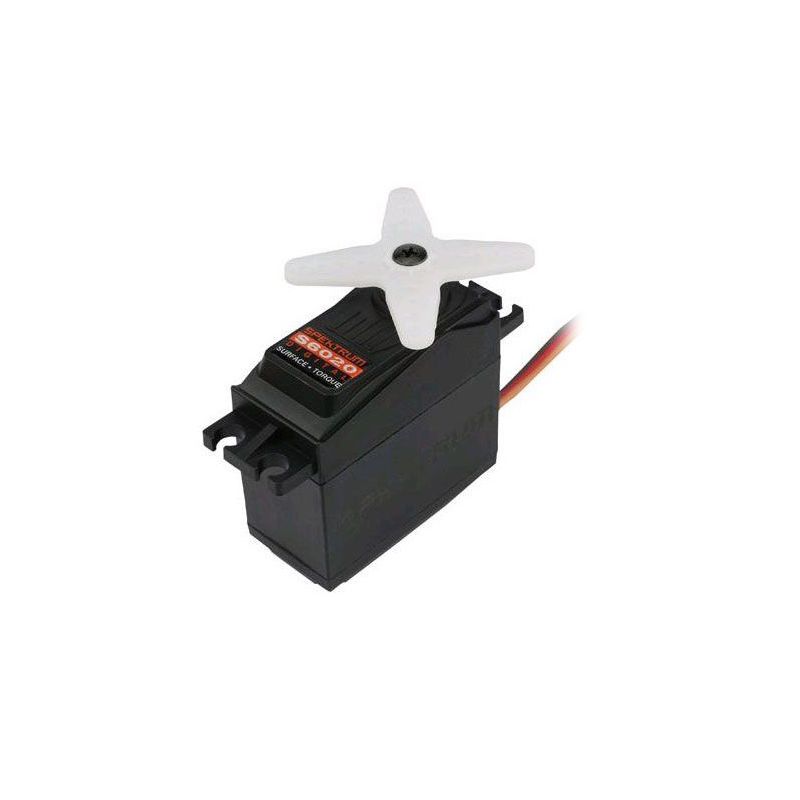 - The heavy-duty, metal-gear S6020 servo puts out an impressive 146 oz-in of torque making it ideal for 1/10-scale trucks and cars. And it delivers this torque with silky smooth precision thanks to its dual ball-bearing output shaft.