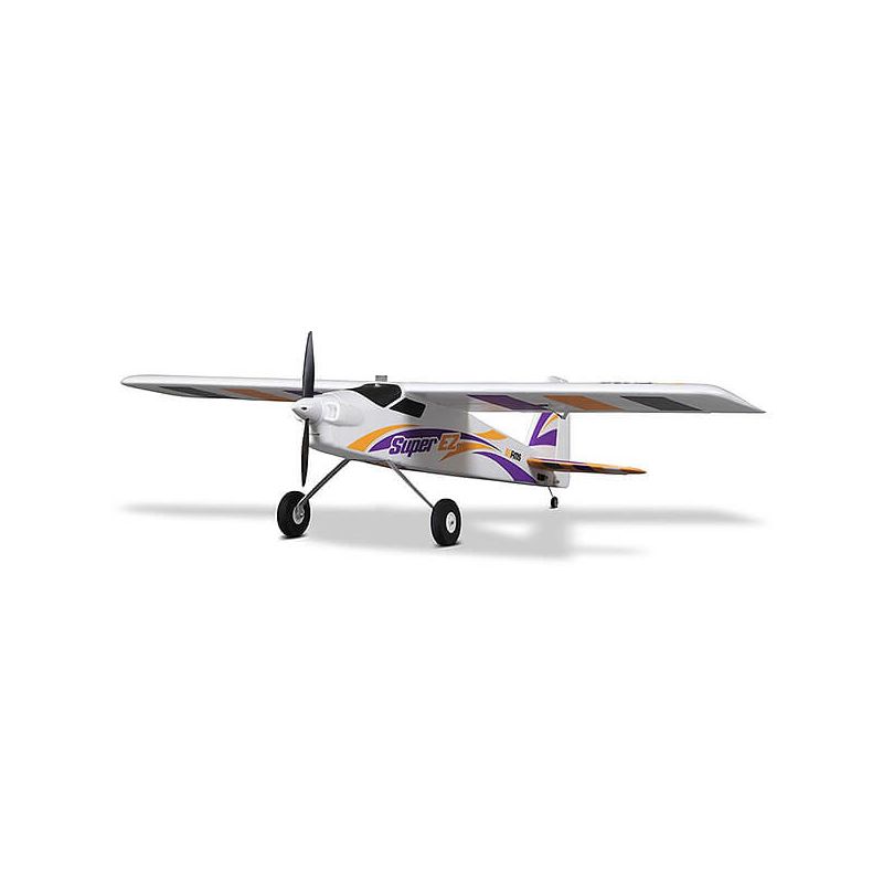 The high-decker is made of lightweight EPO foam and features an extremely low wing loading and stable flight characteristics - allowing beginners to fly even at low speeds with good handling. An improved Brushless drive system and an improved propeller lent from the V3 of the Super EZ giving more power and flight times maintained for 10-15 minutes. Version 4 is more powerful with a 9g digital servo with metal gears and a new color design. A sturdy, lightweight metal suspension takes even the hardest landings.